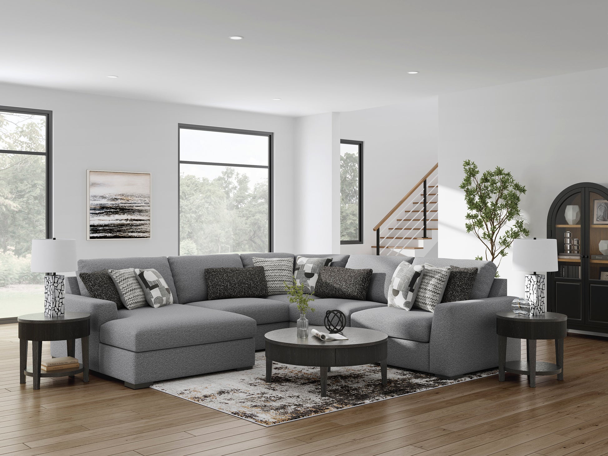 The Edenfield sectional with chaise pairs clean, contemporary lines with exceptional comfort. Sleek track arms create a refined silhouette, while plush cushions invite you to fully unwind. Wrapped in a fresh linen-look upholstery, this sectional complements timeless modern color palettes and brings effortless calm to your living space. Settle in, stretch out, and enjoy a space designed to feel as good as it looks.