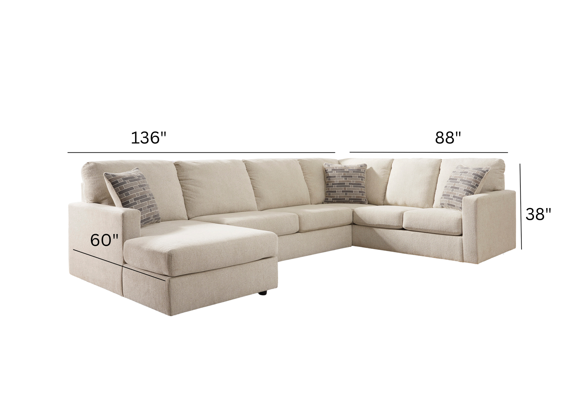 136" W x 88" D x 38" H