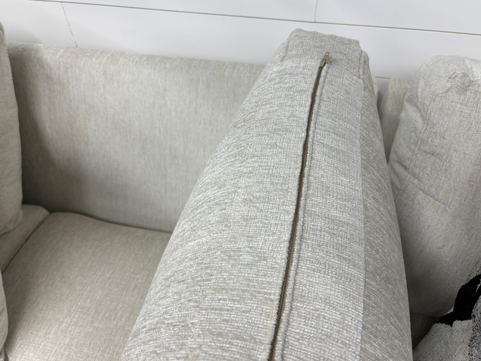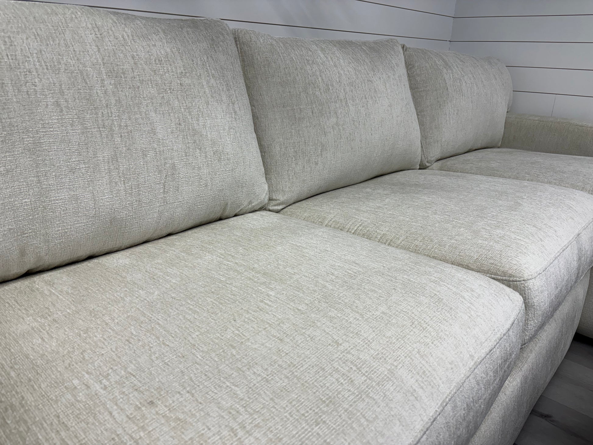 Sophisticated yet inviting, the Biltmore Sectional was designed for modern living with timeless comfort. This sofa chaise features sleek track arms, deep seating, and a soft medium-tone cream chenille fabric that complements any dΓ©cor. The reversible back and seat cushions extend the life of your sofa, while the included accent pillows in bold, contemporary patterns add texture and style.