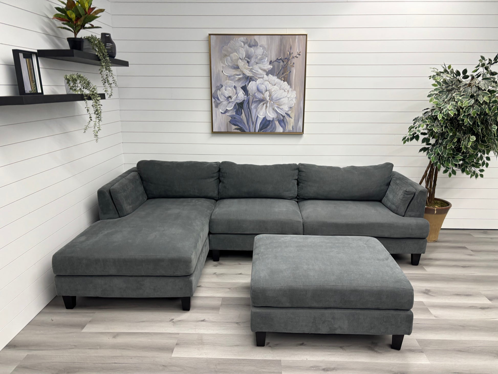 Dark Grey Sectional with Ottoman