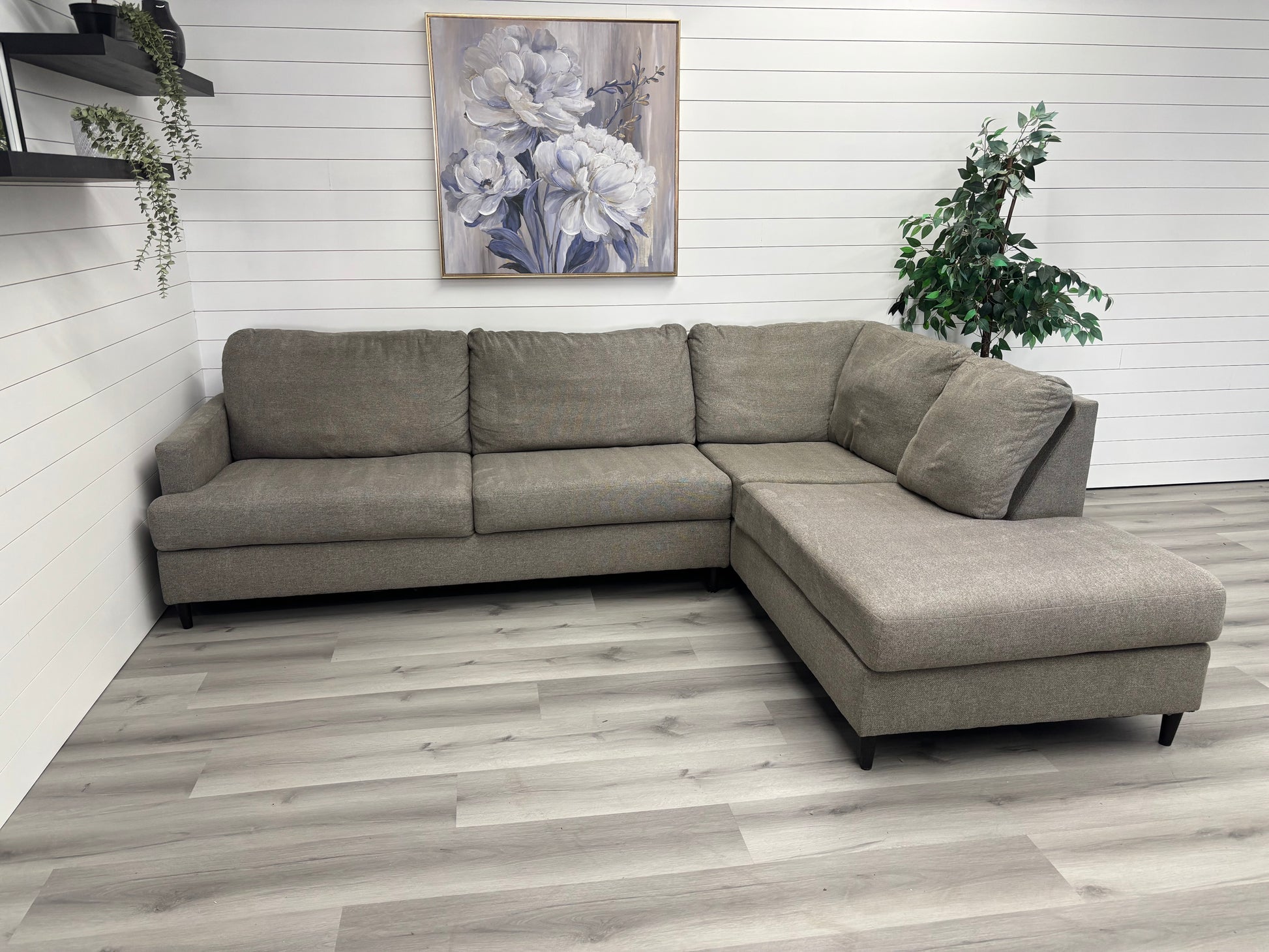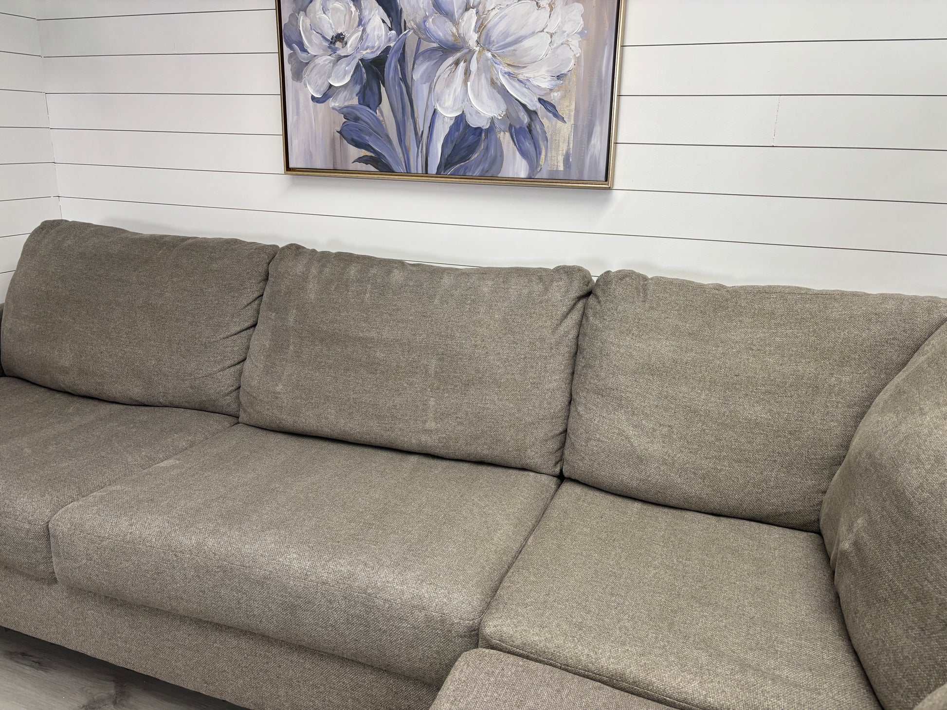 Professionally cleaned and carefully inspected, this sectional is ready for its next home — with no stains, rips, or damage. The bumper chaise design provides the perfect spot to lounge, nap, or unwind after a long day.