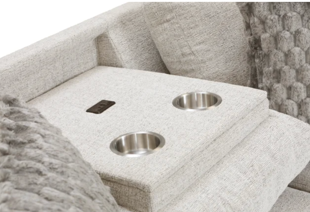 - Transforming middle cushion with USB and USBC changing ports and cupholders. Easily flips up when you need more seating